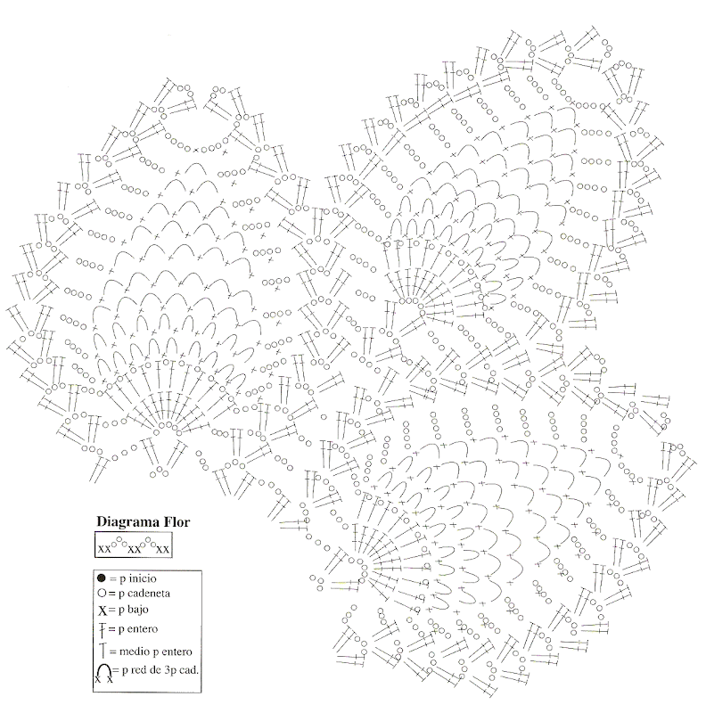 Puntos empleados: cadeneta, , p bajo, p entero, p entero doble , p red de 3 p cadenetas intercaladas con 1 p bajo.