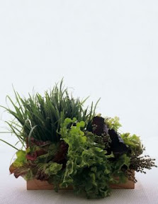 Centro verde:En una caja de madera, organizar distintos tipos de lechugas y hierbas (ciboulette chino, albahaca o cualquier pasto alto).